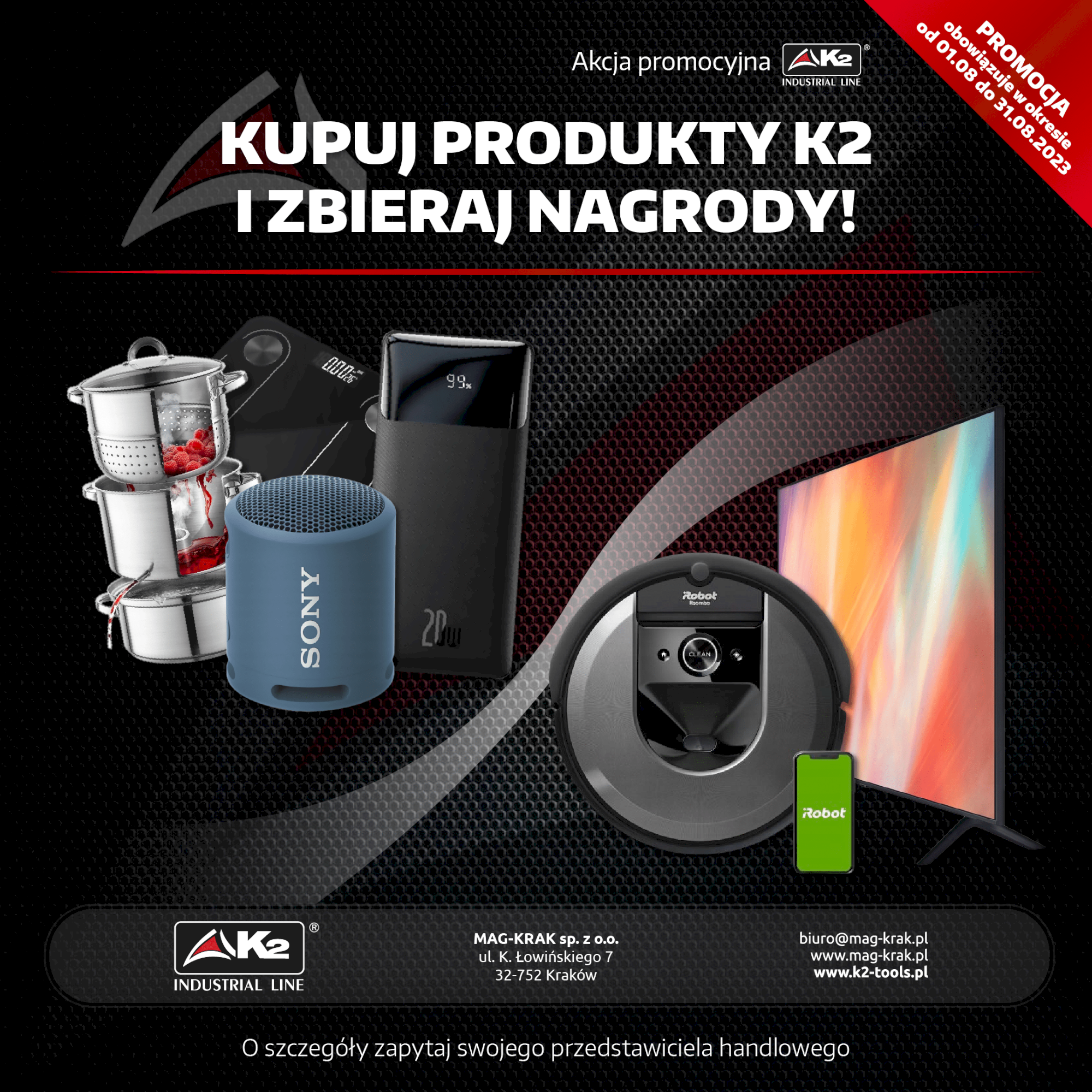 Miesiąc sierpień przepełniony nagrodami! Zbieraj nagrody przy zakupie produktów z katalogu K2 przez cały sierpień. O szczegóły promocji zapytaj swojego przedstawiciela handlowego marki K2